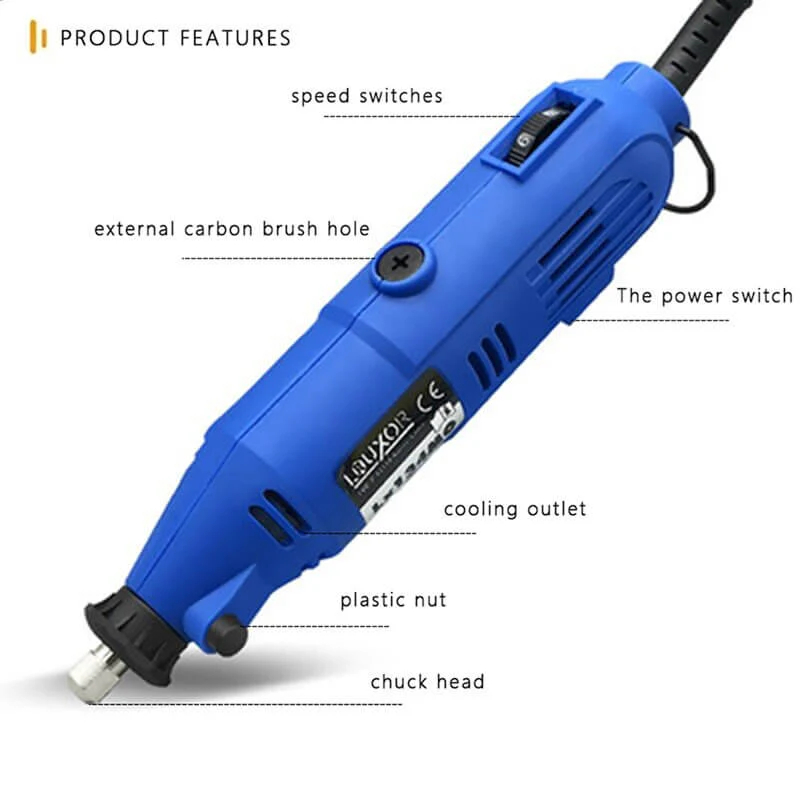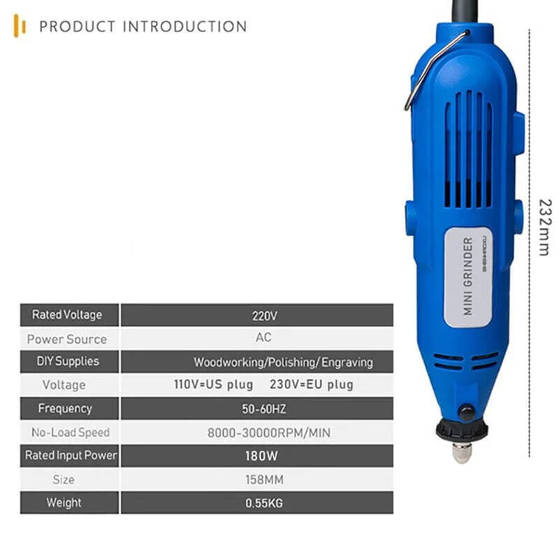 Supports polishing, trimming, carving, cutting, drilling, marking, and drawing.