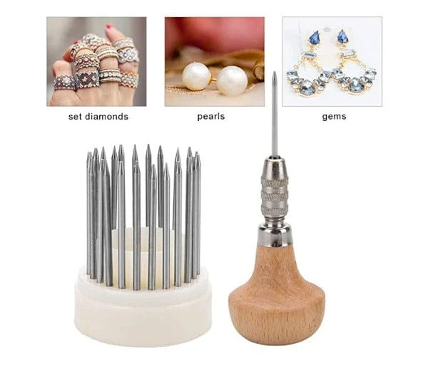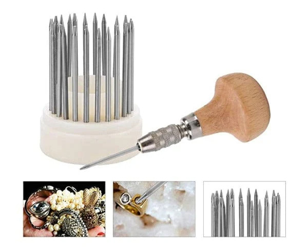 23Pcs beading tool set for stone setting. Used to form beads that hold diamonds, pearls, and stones in mountings. Also used for tightening loose stones.