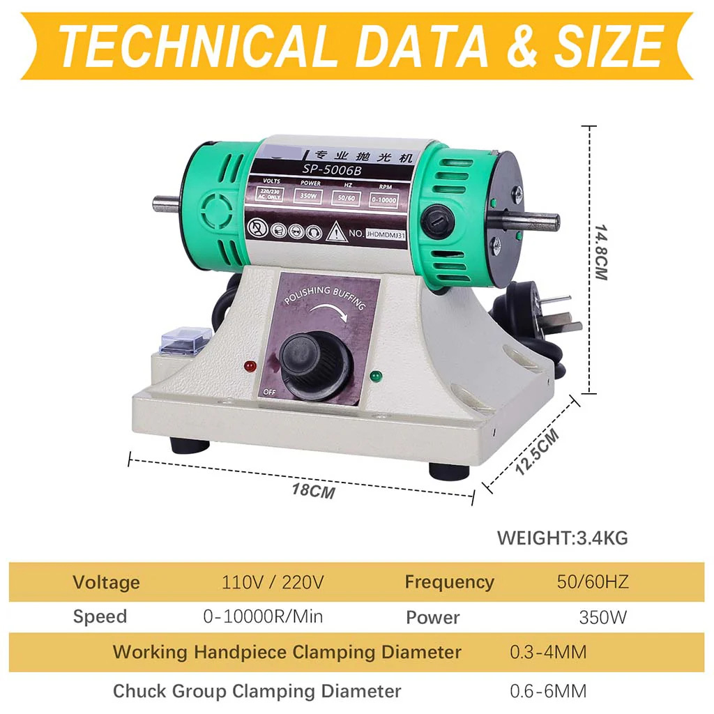 SP-5006B Benchtop Jewelry Buffer Lathe Polisher Jewelry Polishing Grinding Machine