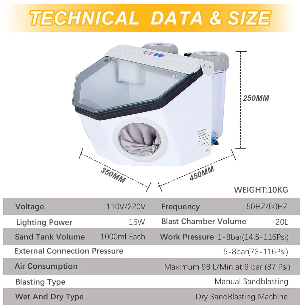 PS-7 16W 20L Universal Jewelry Sandblaster Manual Dry Sandblasting Machine