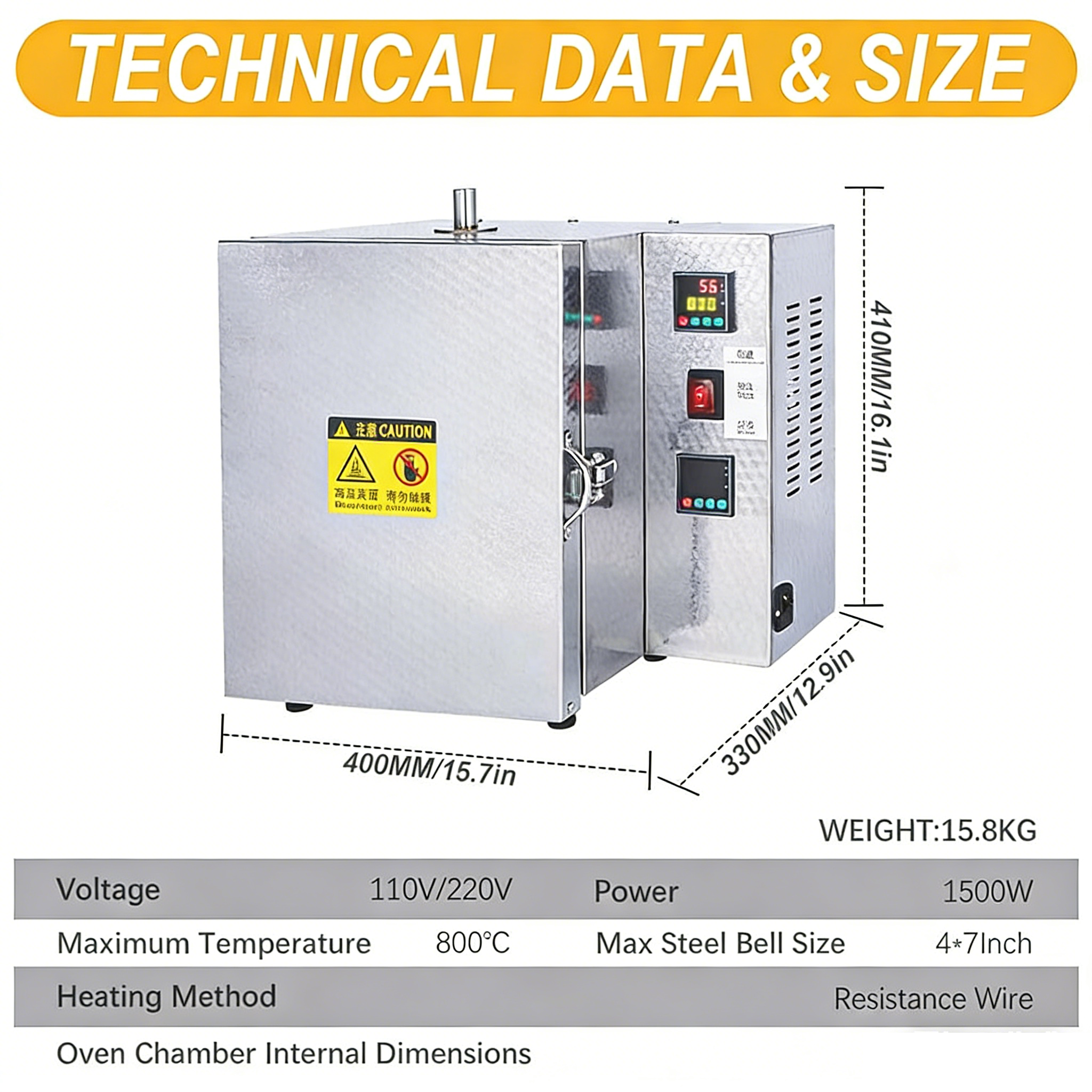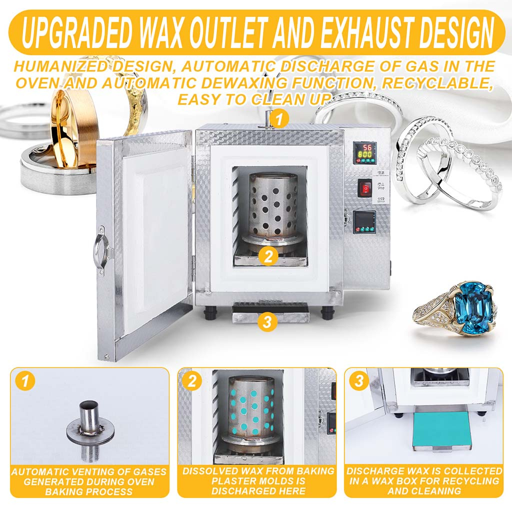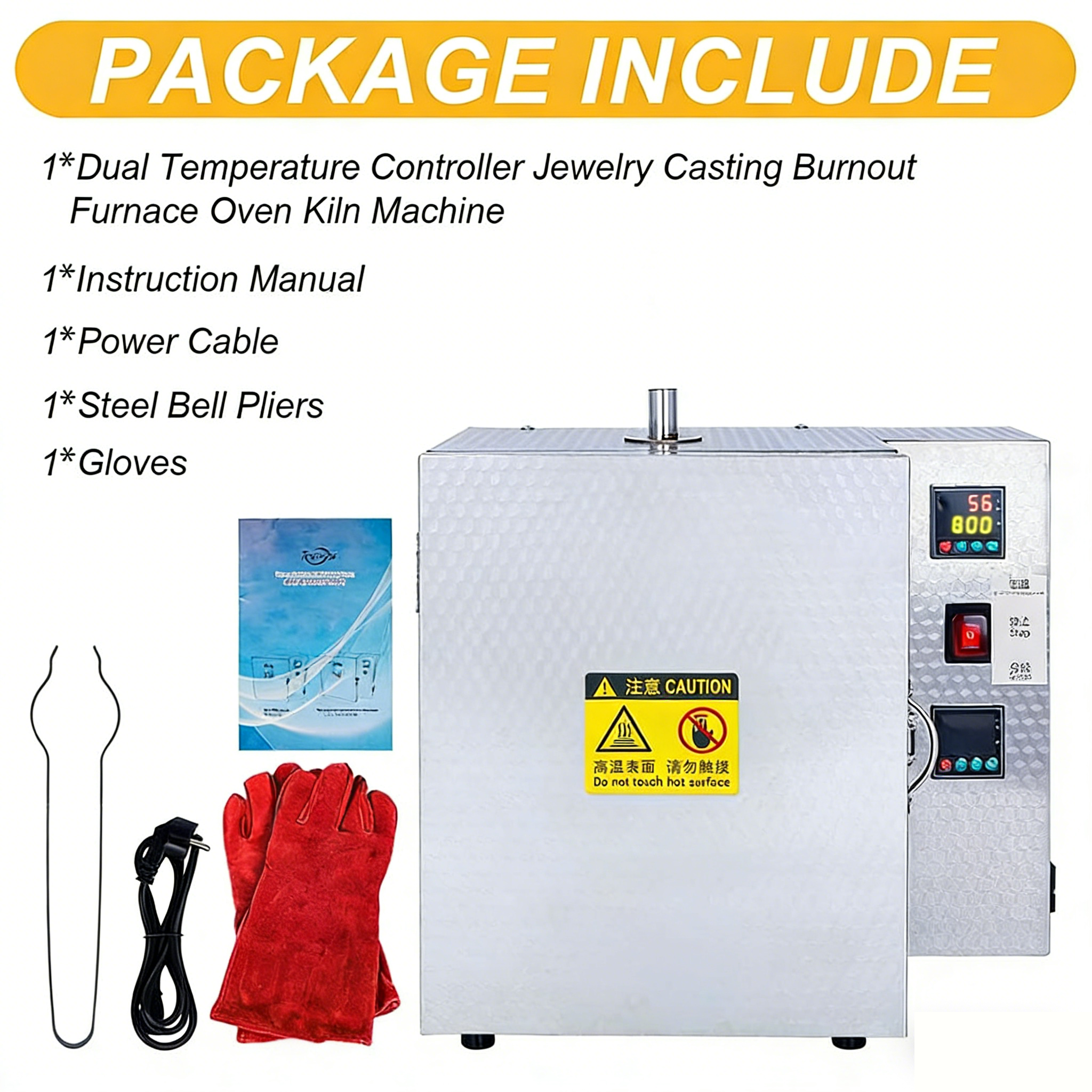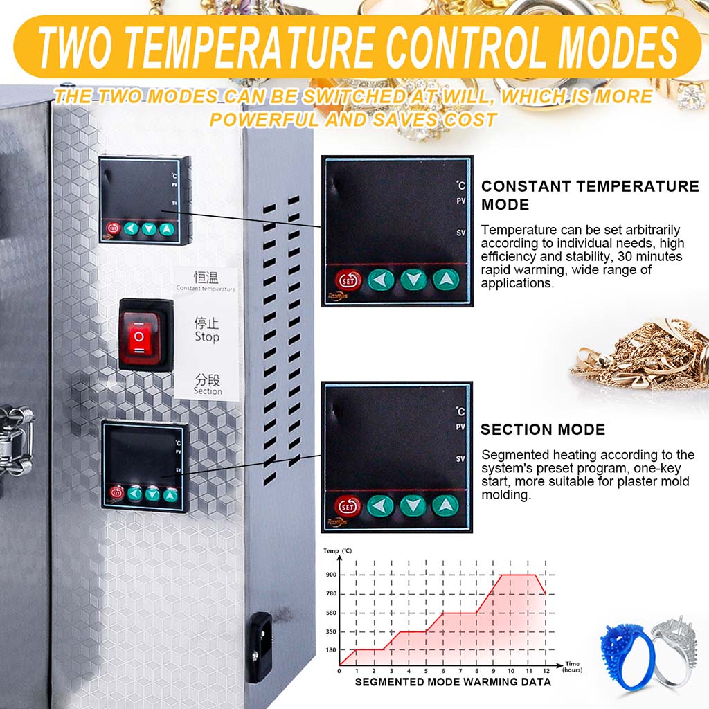 Dual PID Jewelry Making Burnout Furnace 800°C Segmented Heating Jewelry Kiln