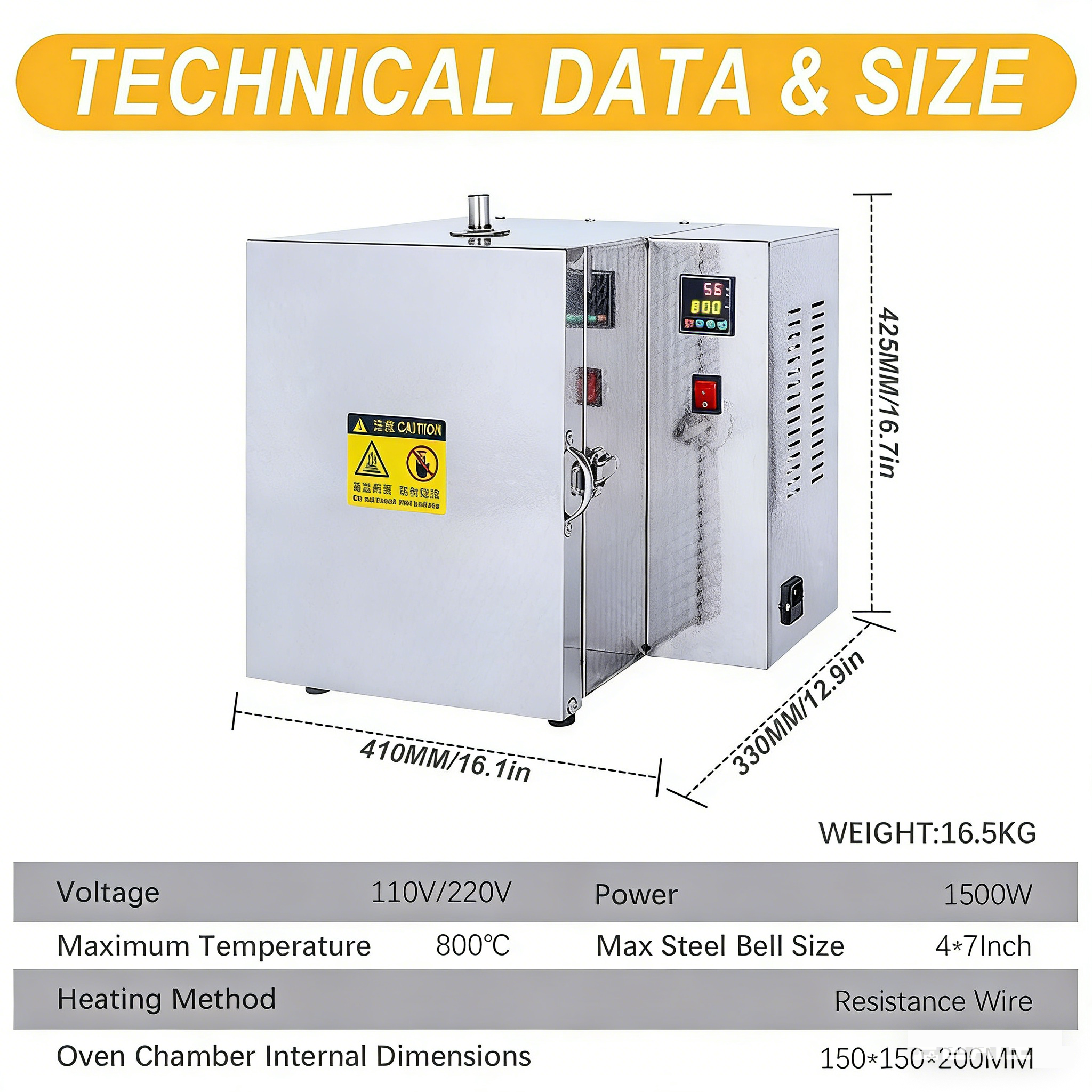Chamber internal dimensions: 150 × 150 × 200 mm