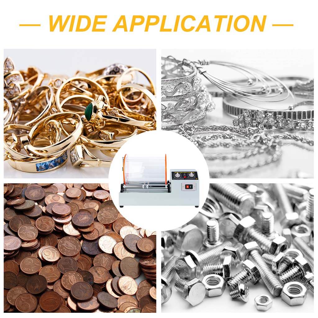Used for surface processing of metal materials including jewelry, steel, copper, aluminum, zinc, and magnesium alloys.