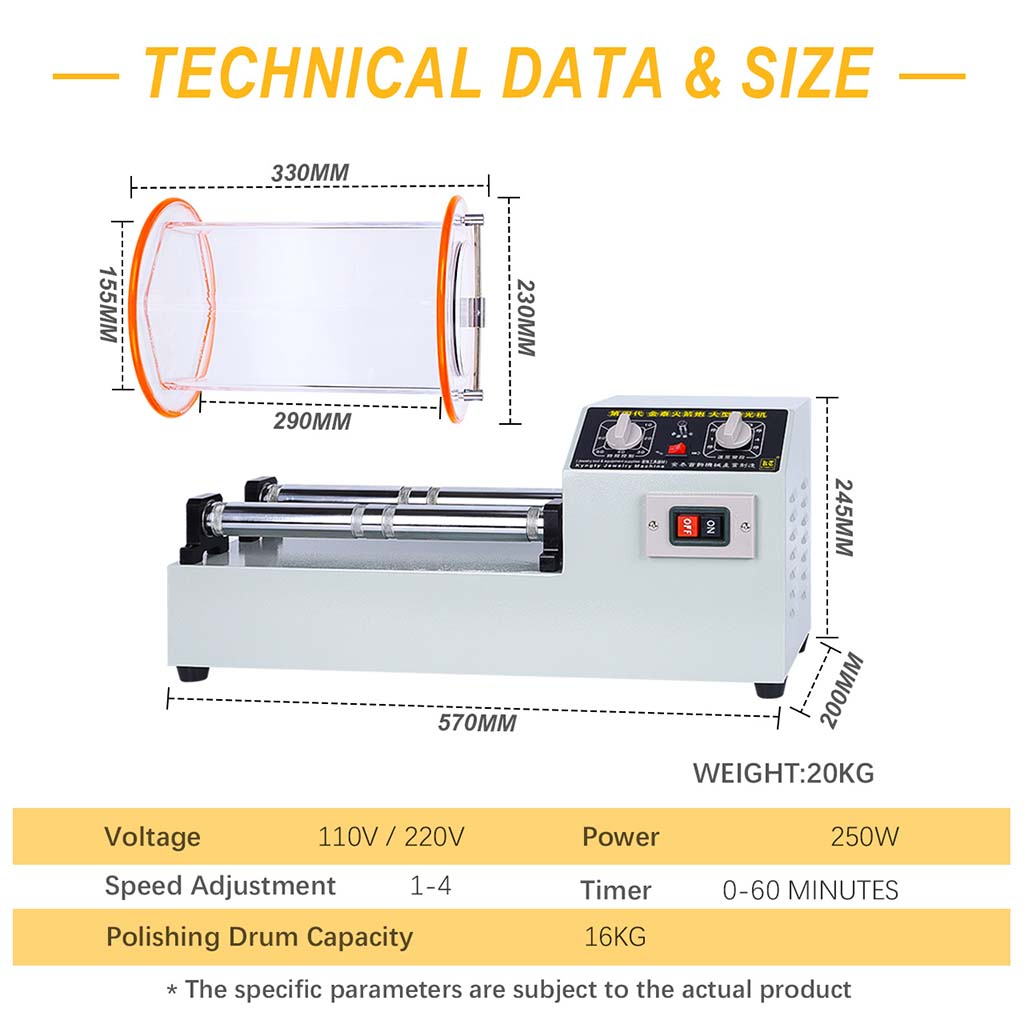KT-1320 16KG Jewelry Rotary Tumbler Surface Jewelry Polishing Machine with Timer