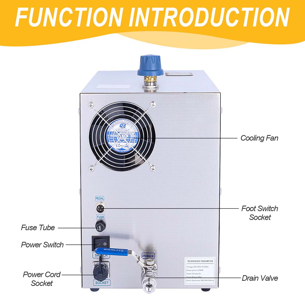 3L 2200W Professional Jewelry Steam Cleaner Machine Stainless Steel