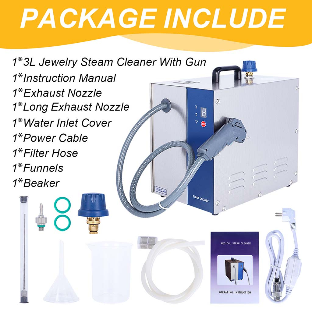 3L 2200W Portable Jewelry Steam Cleaner Machine with Steam Gun